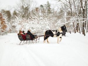 Then, get some warm drinks for the road. Pick up a latte or hot chocolate from Brew Sisters or Uncommon Too before your next winter adventure—a winter sleigh ride you’ll never forget. Few experiences say “romance” quite like dashing through the snow in a horse-drawn open sleigh. Arrange a private 40-minute sleigh ride through the woods with Wild West Ranch, or opt for a private horseback ride at Rise & Ride Ranch for a different magical, storybook moment.