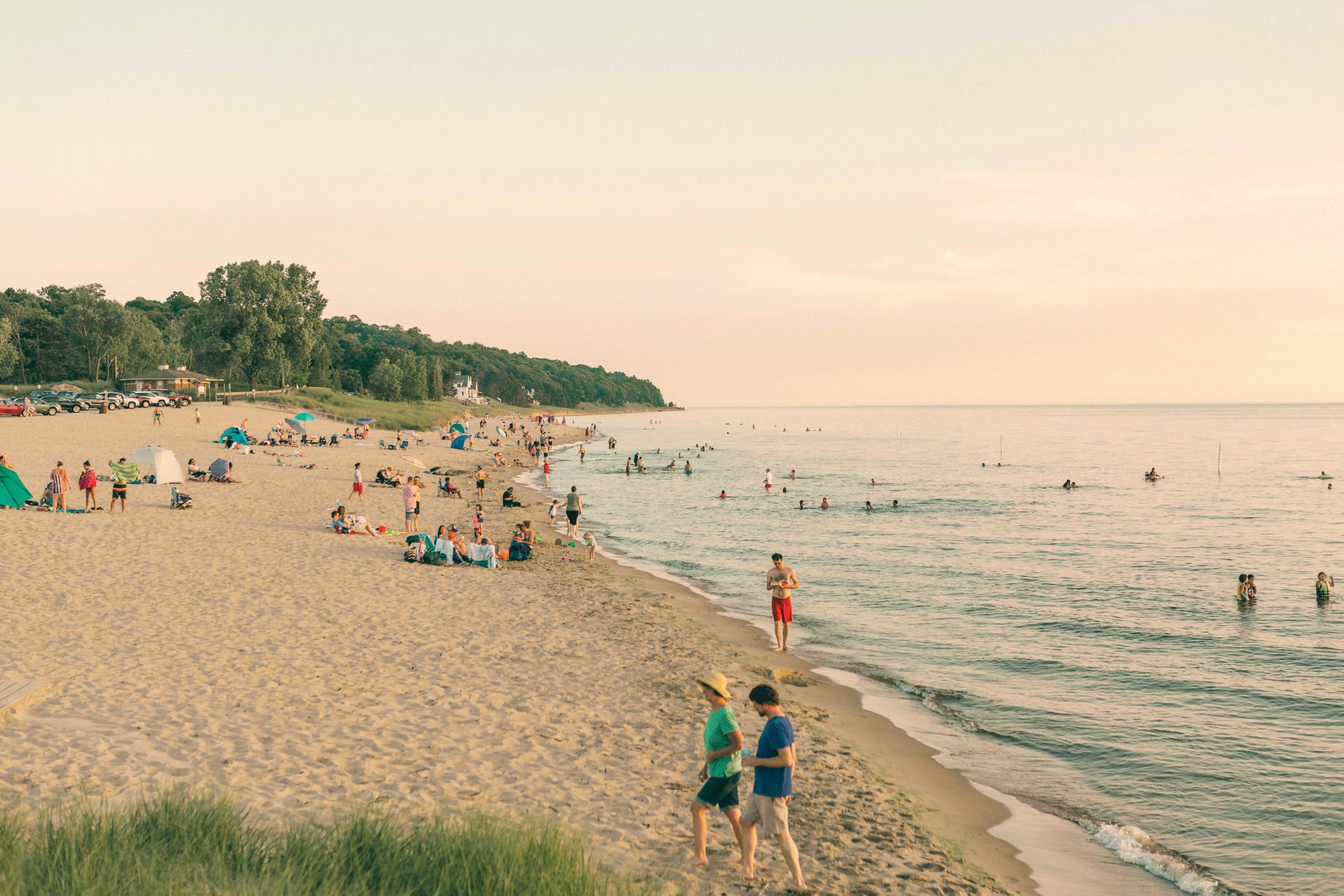 Oval Beach is the crown jewel of Saugatuckโs Lake Michigan beaches, and one of the most beautiful beaches in Michigan. Recognized as one of the top beaches in the USA and one of the top 25 beaches in the world, itโs easy to see why Oval Beach is the preferred choice for beach vacations on Lake Michigan. With a backdrop of rolling rolling sand dunes and a panoramic horizon across the lake, Oval Beach is a scene straight from a postcard. Itโs not just the exquisite views that make this Saugatuck beach a must-see locale; concessions stands, picnic areas, a chain ferry and an Interurban Bus make it easy to hang out for the day and enjoy the town nearby.
